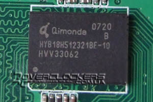 Распаяны чипы памяти DDR3 от Qimonda со временем доступа 1 нс. Память рассчитана на рабочую частоту 2 ГГц, так что еще есть небольшой запас для разгона.