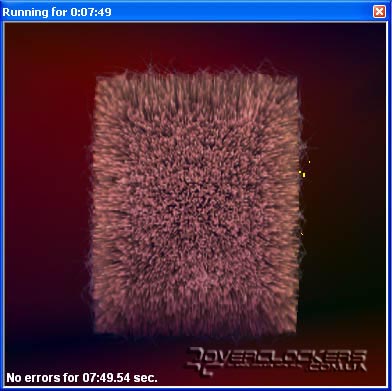 Стабильность работы в разгоне проверялась программой ATITool, тестом "волосатый куб". Для данной карты максимальной стабильной частотой ядра оказались 756 МГц, при этом шейдерные процессоры работали на 1674 МГц. Память же поднялась не только до своего номинала в 2 ГГц, но и значительно выше, однако под нагрузкой сразу же начинала сыпать артефактами. Была подобрана стабильная частота в 1026 (2052) МГц, на которой проходили все тесты без артефактов.