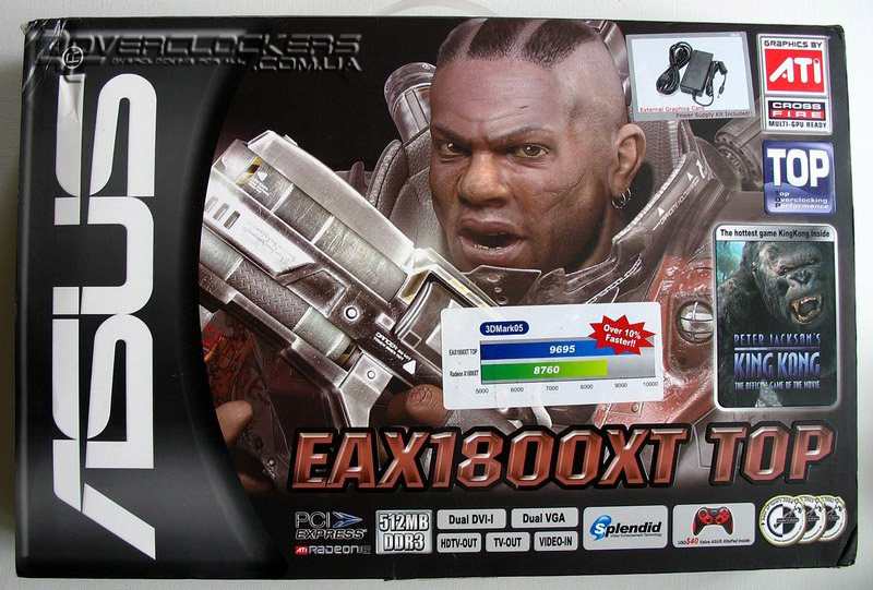Итак, ASUS EAX1800XT TOP выделяется отличной комплектацией, сильно повышенными частотами и очень тихим кулером.
