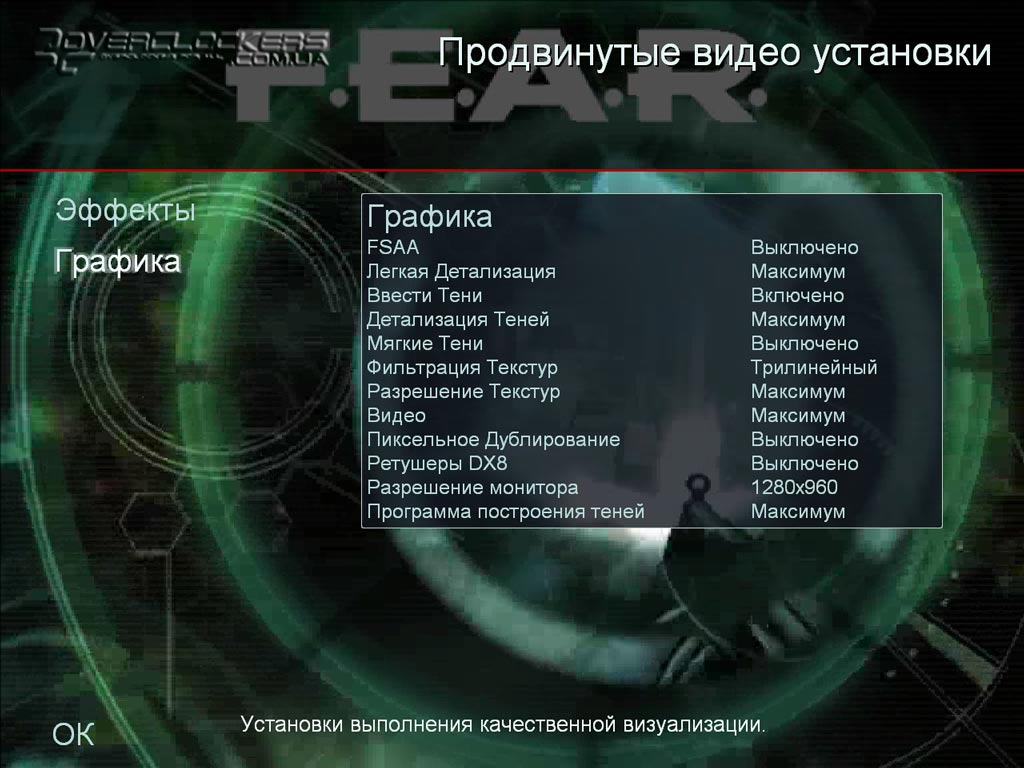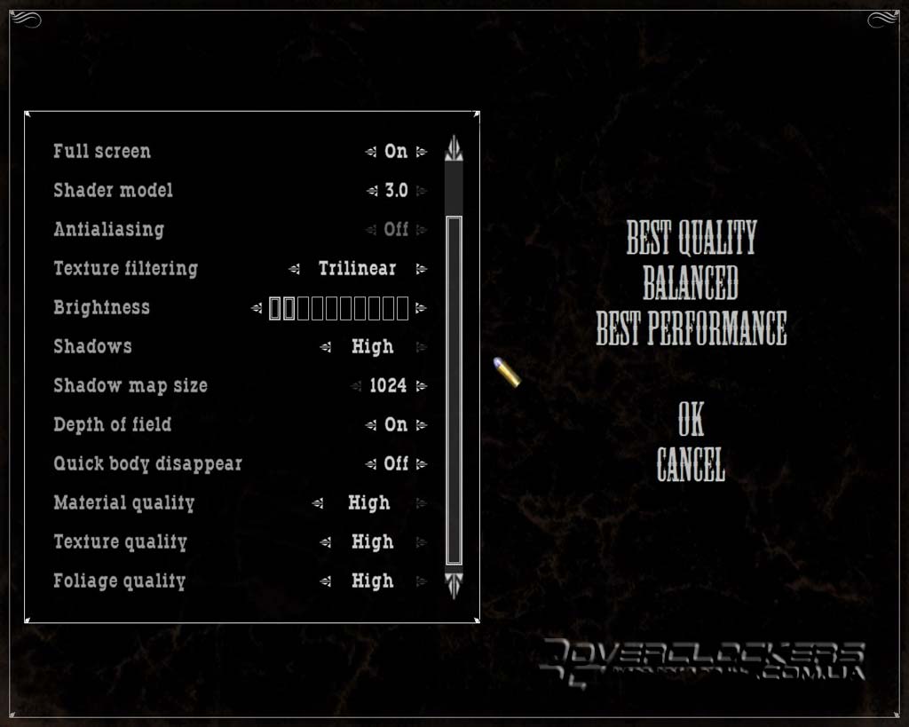 Ниже приведены скриншоты настроек каждой из игр в режиме без АА и AF (при активации сглаживания и анизотропной фильтрации в настройках просто менялись соответствующие пункты), а также скриншоты из тестовых демо-роликов всех игр, кроме F.E.A.R., так как там использовался стандартный ролик. Игра S.T.A.L.K.E.R. тестировалась только в одном режиме – без сглаживания и анизотропной фильтрации, так как при их активации игра вела себя нестабильно – количество fps в игре сильно менялось от запуска к запуску. Причина такого поведения так и не была найдена, поэтому было решено не включать в обзор график с AA и AF, так как было бы невозможно гарантировать достоверность полученных результатов.