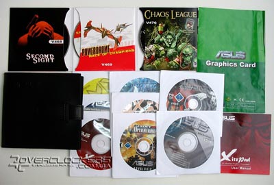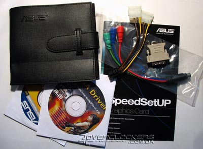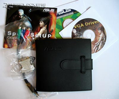 Комплектация этой видеокарты просто поражает – к примеру, вы много знаете видеокарт, в комплекте с которыми идет специальный внешний блок питания? (сразу, получается, вспомнить только другую карту от ASUS - EN7800GT Dual). Он будет не лишним при эксплуатации этой видеокарты в системе с не очень мощным БП, так как энергопотребление данной карты составляет более 100 Вт. Геймпад в комплекте – тоже довольно редкое явление, но все же более частое, чем блок питания для видеокарты. Кроме этого, в комплекте есть большое количество всех необходимых шнуров и переходников, отличный чехол для CD, и неплохой набор CD с играми и ПО.