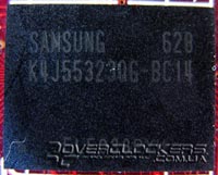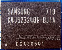 На видеокарте установлено 256 Мб памяти производства Samsung, номинальная частота данных 1 нс чипов – 2000 МГц, на них память и работает.