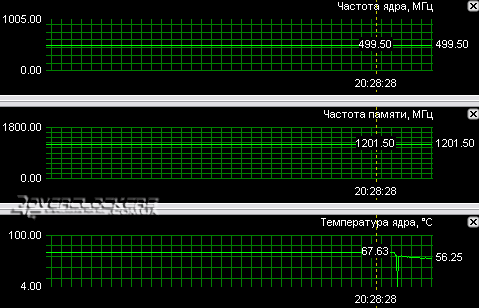 | Частота графического процессора, MHz | 675/1460 | 500/500/518 (номинал - 450/450/470) |