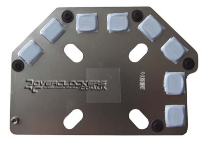 Термоинтерфейсом между чипом и радиатором служит терможвачка, которая тяжело оттирается. Да и снимается из-за нее кулер проблематично. Память контактирует с радиатором через термопрокладки.