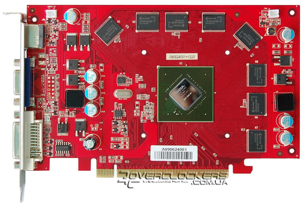 Видеокарта, выполненная на красном текстолите, очень короткая и в сравнении с референсными акселераторами Green Edition на базе G94 отличается дизайном PCB.