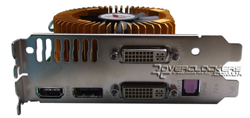 Кроме двух стандартных DVI есть HDMI и совершенно новый интерфейс DisplayPort. Последний со временем должен стать заменой DVI. DisplayPort обладает пропускной способностью до 10,8 Гбит/с, низким вольтажом, поддержкой HDCP-видео, и внешне напоминает привычный HDMI, но при этом с ним не совместим, как в прочем, и со старым DVI. На задней панели есть также оптический вход S/PDIF. Используя соответствующий кабель, который поставляется с видеокартой, можно подключить звук с оптического выхода материнской платы к видеокарте для передачи аудиоданных по цифровым интерфейсам. Если на плате нет оптического S/PDIF, то звук можно передать по обычному цифровому, подключив кабель к разъему возле интерфейса MIO на видеокарте.