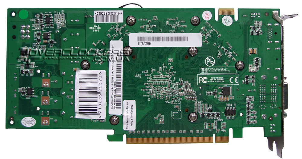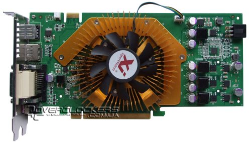 Дизайн PCB отличается от XpertVision GeForce 9600GT 512MB. Разводка платы больше напоминает GeForce 8800GT 512MB Sonic этого производителя. Та же трехфазная схема питания графического процессора, но силовые элементы уже не имеют радиатора. Распаяна память Samsung со временем доступа 1,0 нс, которая рассчитана на частоту 2 ГГц.