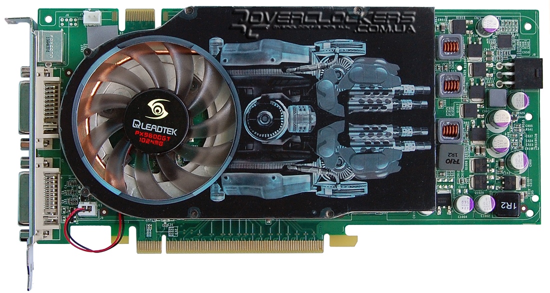 Графический адаптер Leadtek WinFast PX9600 GT, как и все участники нашего тестирования, отличается от референсного дизайна GeForce 9600 GT платой и оригинальной однослотовой системой охлаждения.