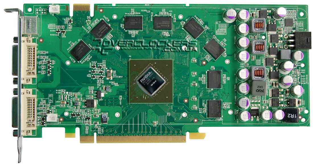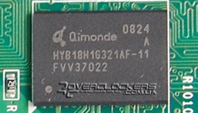 Распаяно восемь чипов памяти Qimonda по 128 МБ со временем доступа 1,1 нс, т.е. рассчитанных на 1800 МГц.
