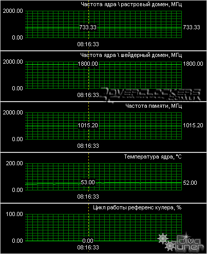 Температура в 60 °C на самом деле для такого ядра небольшая, так что для снижения шума можно зафиксировать обороты на меньшем значении через Riva Tuner. Мы же наоборот подняли обороты для разгона, но это не сильно помогло данной карте.