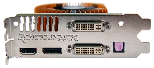 На фоне остальных видеокарт эта модель выделяется разнообразием внешних интерфейсов на задней панели: два DVI, HDMI, Display Port и оптический разъем для подключения звука.