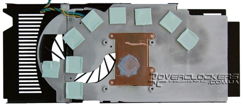 Система охлаждения аналогична референсным однослотовым кулерам. Ядро конактирует с медной вставкой через обычную термопасту, а память — через специальные термопрокладки.