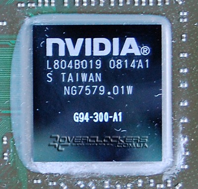 Как и у остальных представителей GeForce 9600 GT графический чип G94 не имеет вокруг кристалла защитной рамки:
