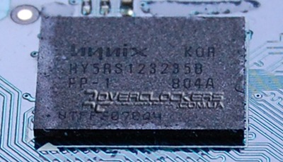 В качестве памяти используется восемь чипов памяти Hynix HY5RS1232358-FP1 со временем доступа 1,0 нс.