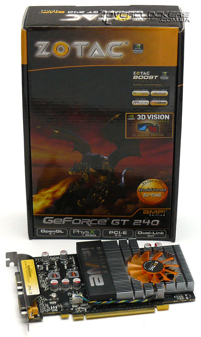 В качестве представителя GeForce GT 240 к нам на тестирование попала видеокарта производства Zotac, относящаяся к серии AMP!, т.е. с повышенными рабочими частотами. Ну а в конкуренты были взяты две green-версии адаптеров GeForce 9600 GT и 9800 GT от Sparkle и Inno3D соответственно.