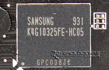 В качестве памяти на видеокарте используется четыре микросхемы Samsung K4G10325FE-HC05 стандарта GDRR5, общим объемом 512 МБ и шиной 128 бит.