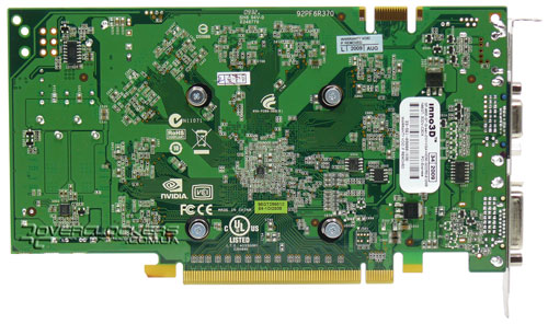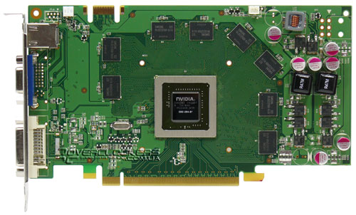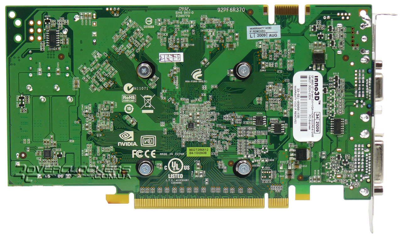 Судя по наличию посадочного места под разъем дополнительного питания, печатная плата используется также для обычных моделей GeForce 9800 GT этого производителя. Но как и у стандартных решений, для питания GPU на карте реализовано две фазы, для памяти — одна.