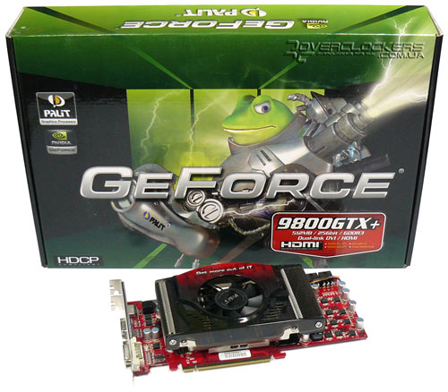 В качестве оппонента использовался адаптер на базе GeForce 9800 GTX+ производства Palit. Продукт поставляется в большой зеленой коробке с изображением Фробота, помеси лягушки и робота.