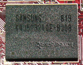 Память общим объемом 512 МБ набрана восьмью чипами Samsung K4J52324QE-BJ08, рассчитанными на эффективные 2400 МГц. Шина доступа к памяти, как и положено, составляет 256 бит.