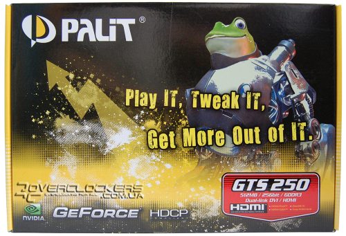 Первой рассмотренной нами видеокартой выступит «новинка» (если ее так можно назвать) в лице GeForce GTS 250. Эта модель ничем существенно не отличается от предшественника GeForce 9800 GTX+. NVIDIA упростила дизайн новой платы и добилась более низкого энергопотребления, благодаря чему эти платы должны довольствоваться одним 6-штырьковым разъемом дополнительного питания. Так же появились модели с увеличенным до 1 или 2 ГБ объемом видеопамяти, которые будут присутствовать на рынке параллельно с 512-мегабайтными версиями. Мы рассмотрим именно такую карту с объемом памяти 512 МБ в исполнении компании Palit.