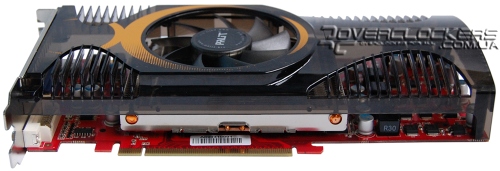 Сверху видеокарта закрыта полупрозрачным пластиковым кожухом, который смотрится довольно симпатично. Данная крышка слегка выгнута и имеет ряд боковых отверстий, что не создаст препятствий для конвекции воздуха.