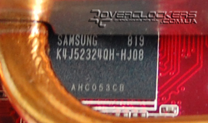 Используются микросхемы памяти Samsung K4J52324QH-HJ08 со временем выборки 0,83 нс, рассчитанные на частоту 2410 МГц.