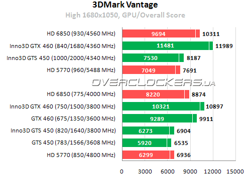 Десятипроцентное преимущество iChill GeForce GTX 460 Freezer над референсом позволяет добиться крошеного преимущества над Radeon HD 6850. А вот младшая карта iChill GeForce GTS 450 Freezer может конкурировать с Radeon HD 5770 только при разгоне.