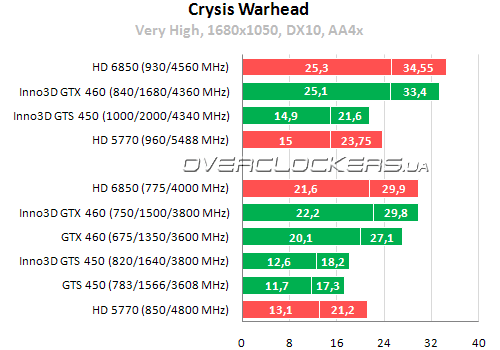 | Crysis: Warhead 1680x1050, AA4x | 27,1 | 27,1 | 0 |