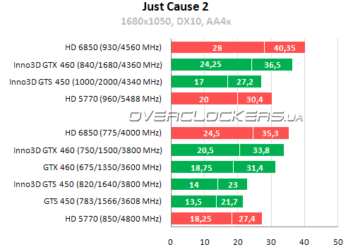 | Just Cause 2 1680x1050, AA4x | 32,4 | 31,4 | -3% |