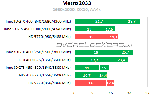 | Metro 2033 1680x1050, DX10, AA4x | 23,5 | 23,4 | -0,04% |