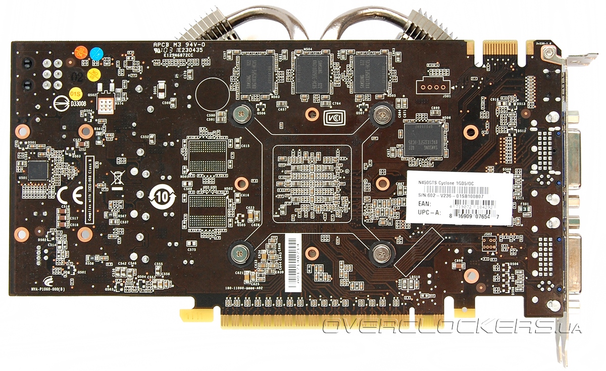Особенностью видеокарты является система охлаждения Cyclone. Она и выделяет данный продукт на фоне остальных, поскольку печатная плата выполнена по референсному дизайну.