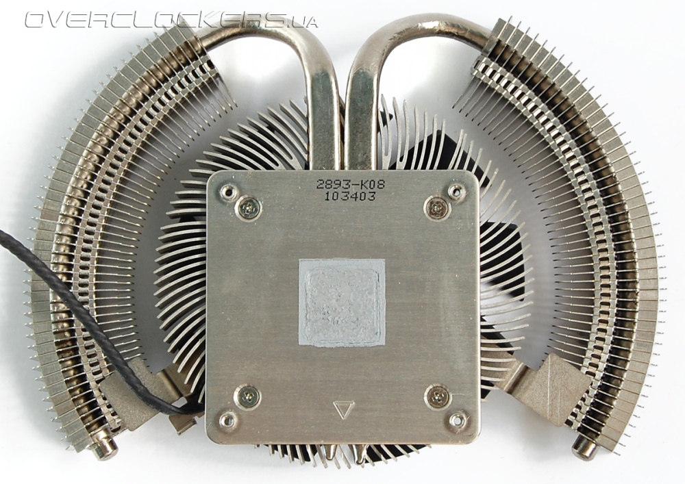 Кулер имеет форму чаши. На двух изогнутых тепловых трубках расположены боковые секции радиатора с тонкими алюминиевыми пластинами. Основание тоже имеет небольшой радиатор из загнутых раздваивающихся лепестков, как у BOX-кулеров процессоров Intel.