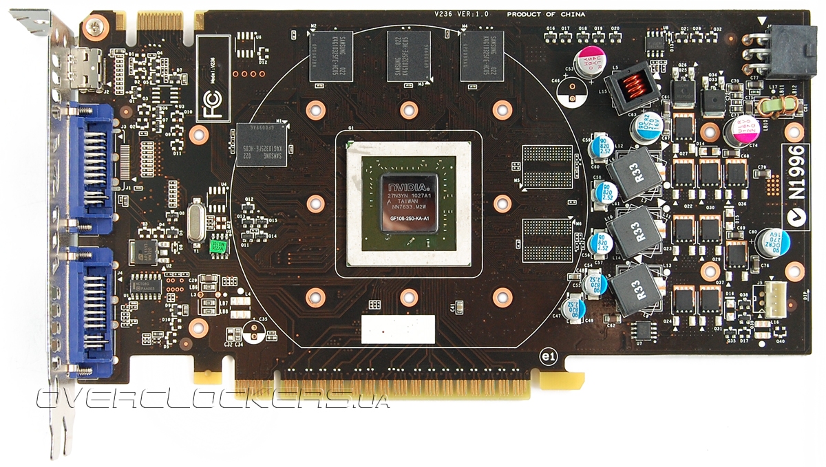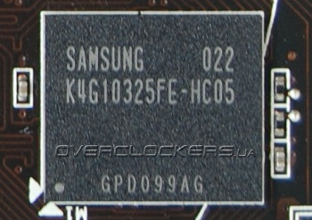 Карта оснащена одним гигабайтом видеопамяти. Распаяны микросхемы Samsung K4G10325FE-HC05.