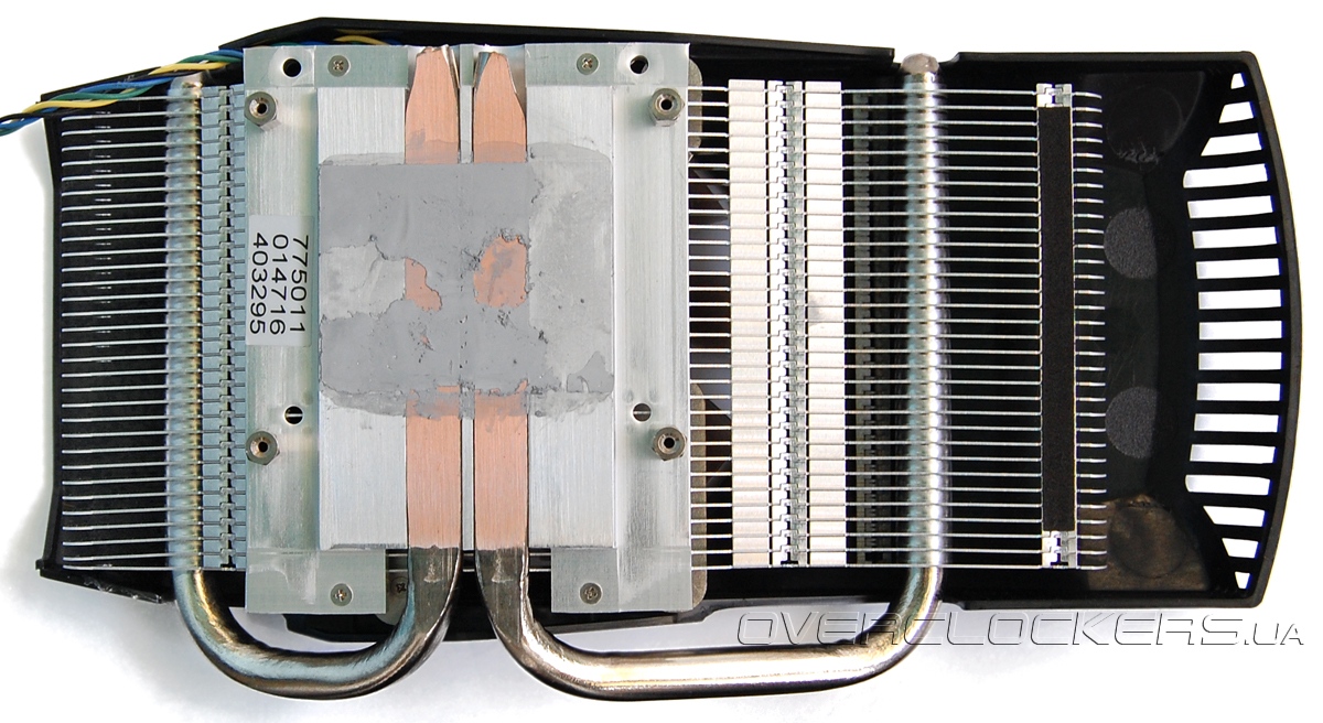 Установленная система охлаждения ничем не отличается от кулера TOP-версии GeForce GTS 450. Выполнен он по технологии Heatpipe Direct Touch, когда тепловые трубки контактируют напрямую с ядром.