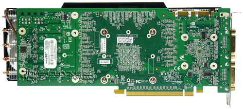 Дизайн печатной платы полностью повторяет референсный и выглядит немного проще, чем у GeForce GTX 285. Для питания карты установлено два обычных шестиконтактных разъема.