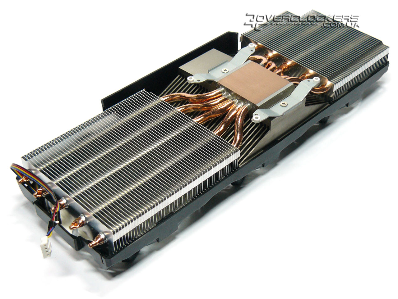 Используемый кулер Accelero XTREME GTX 280 состоит из алюминиевого радиатора с продольными ребрами и медной вставкой, часть тепла от которого передается через пять тепловых трубок тонким алюминиевым ребрам, расположенным поперек карты.