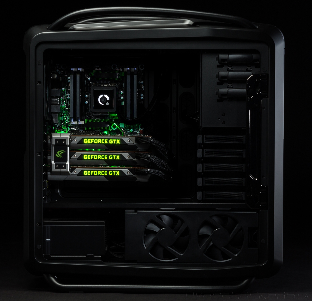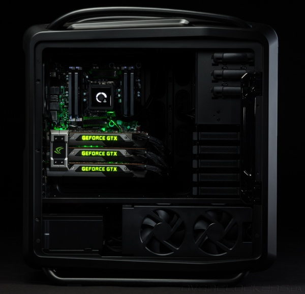 Еще NVIDIA акцентирует внимание на возможности использования GeForce GTX Titan в компактных системах стандарта SFF (small form factor) благодаря тому, что размеры новичка сопоставимы с GeForce GTX 680, а не с GeForce GTX 690. То есть Titan максимально возможный по производительности вариант для систем SFF, да при этом еще и более чем тихий в сравнении с тем же GeForce GTX 680. Ниже вы можете лицезреть один из примеров таких компактных корпусов — Falcon Northwest Tiki.