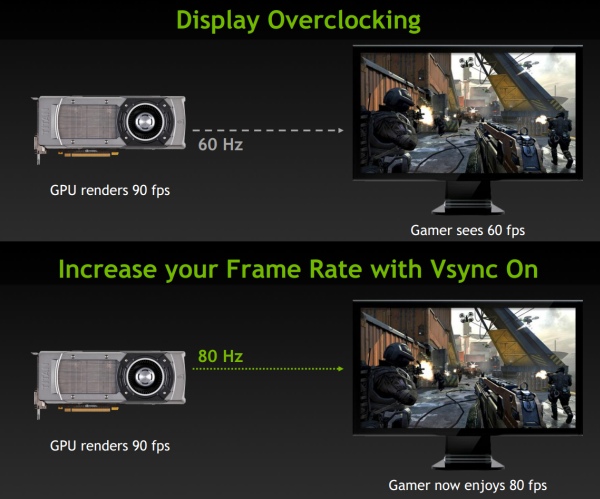 Titan принес с собой одну прелюбопытную возможность, которую обеспечивает GPU Boost 2.0. NVIDIA именует это «разгоном монитора». При помощи специальных утилит можно повысить pixel clock, что в итоге даст большую частоту обновления изображения. И в качестве примера озвучивается такое значение как 80 Гц вместо 60 Гц. Весьма неплохо для тех, кто любит играть в динамичные шутеры с высокой частотой кадров при активной вертикальной синхронизации. Правда, работать такой разгон будет не на всех мониторах — нужно экспериментировать. У нас пока не было времени на практическое исследование, да и не совсем ясно какие программные средства дают такие возможности. Но в будущем обязательно испробуем и такой разгон.