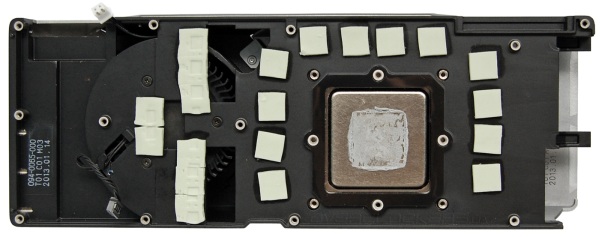 Радиатор по размерам немного длиннее такового у GeForce GTX 680, благодаря чему площадь рассеивания больше. Повысить эффективность помогает и новый термоинтерфейс с улучшенными характеристиками.