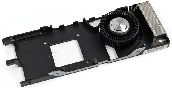 Система охлаждения турбинного типа. Массивное основание традиционно служит для отвода тепла от микросхем памяти и силовых компонентов.