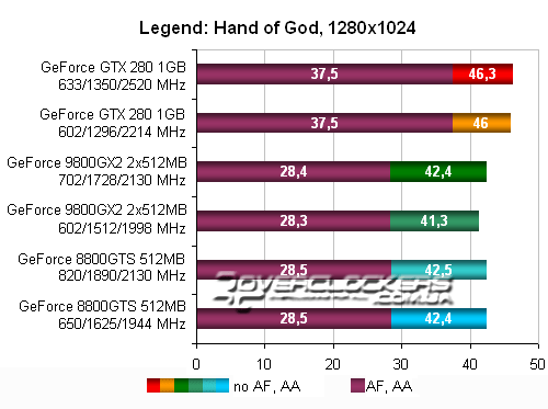 Не триумф, но уверенная победа GeForce GTX 280 во всех тестируемых режимах. Даже более удачный разгон не позволяет сопернику обогнать модель на GT200.