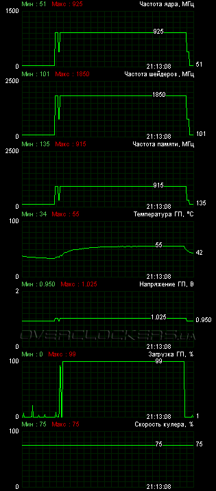 Большого разгона от данной модели мы не ожидали, хотя она все же смогла немного удивить нас частотами графического процессора, который стабильно работал на 925/1850 МГц при напряжении 1,025 В. Однако память выше 1830 МГц уже была нестабильна, а ведь именно она сдерживает производительность данного решения.
