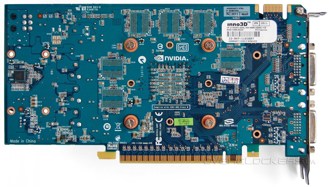 Печатная плата действительно не отличается от стандартного дизайна GeForce GTX 550 Ti и GeForce GTS 450.