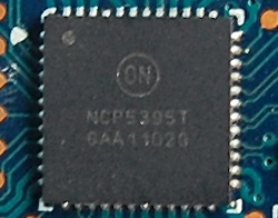 Трехфазный преобразователь питания GPU управляется стандартным контроллером NCP 5395T. Есть возможность регулировки напряжения с помощью программных средств.