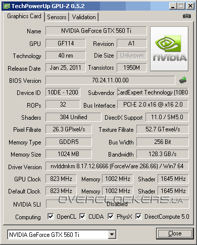 Начнем мы с младшего представителя в линейке GeForce GTX 560 Ti, который не имеет заводского разгона.
