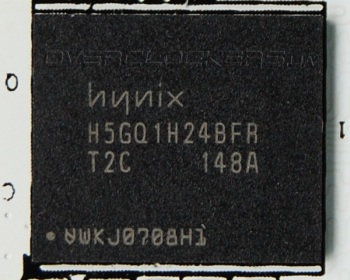 Объем видеопамяти 1024 МБ набран восемью микросхемами Hynix H5GQ1H24BFR-T2C.