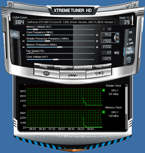 Мы осуществляли разгон при помощи популярной утилиты MSI Afterburner. Но у KFA2 есть и своя программа для разгона видеокарт — Xtreme Tuner HD.