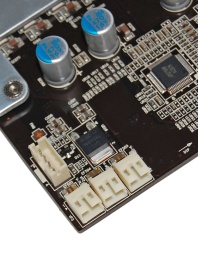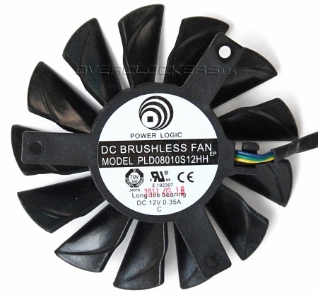 Отличие Twin Frozr III от Twin Frozr II заключается в особой форме лопастей вентиляторов, что обеспечивает более мощный воздушный поток. В данном случае используется пара вентиляторов Power Logic PLD08010S12HH диаметром 80 мм (лопасти 75 мм).