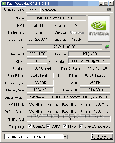 Довольно внушительные цифры с учетом того, что некоторые GeForce GTX 560 Ti побывавшие у нас (Palit, Gainward) едва взяли рубеж в 950 МГц по ядру.