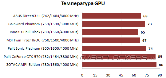 - GeForce GTX 580 (Zotac GTX 580 AMP! на пониженных до стандарта частотах);